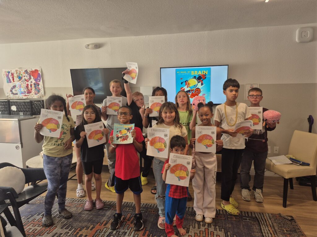 Using the anchor book My Brain My Brain My Beautiful Brain, students explored seven core sections designed to help youth optimize their brain health while strengthening protective factors, such as stress reduction, quality sleep, TBI’s and mental stimulation, that can lower dementia risk; risks that research shows can begin as early as childhood.
